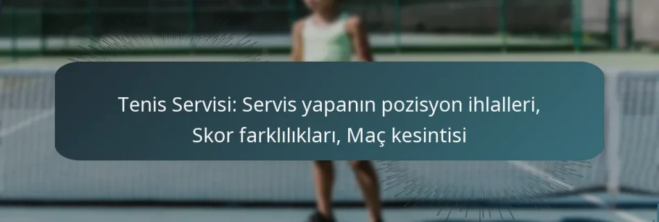 Tenniste servis, oyunun kritik bir yönüdür ve çeşitli yaygın ihlaller bir oyuncunun performansını bozabilir. Bunlar arasında ayak hataları, çift hata, yasadışı atışlar, servis gecikmeleri ve file ihlalleri bulunur; her biri cezalara yol açabilir. Tekniklerini geliştirerek ve baskı altında sakin kalarak, oyuncular bu ihlalleri en aza indirebilir ve genel servis etkinliklerini artırabilirler.