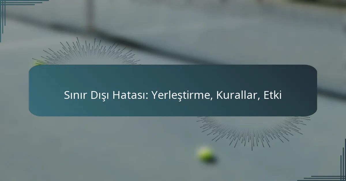 Out of bounds hatası, topun veya oyuncunun belirlenmiş oyun alanını terk etmesine neden olan herhangi bir eylem olarak tanımlanır. Bu durum, spora bağlı olarak topun kaybına veya bir cezaya yol açabilir. Bu kuralın anlaşılması, hem oyuncular hem de hakemler için önemlidir, çünkü oyun stratejisini ve sonuçlarını etkiler.